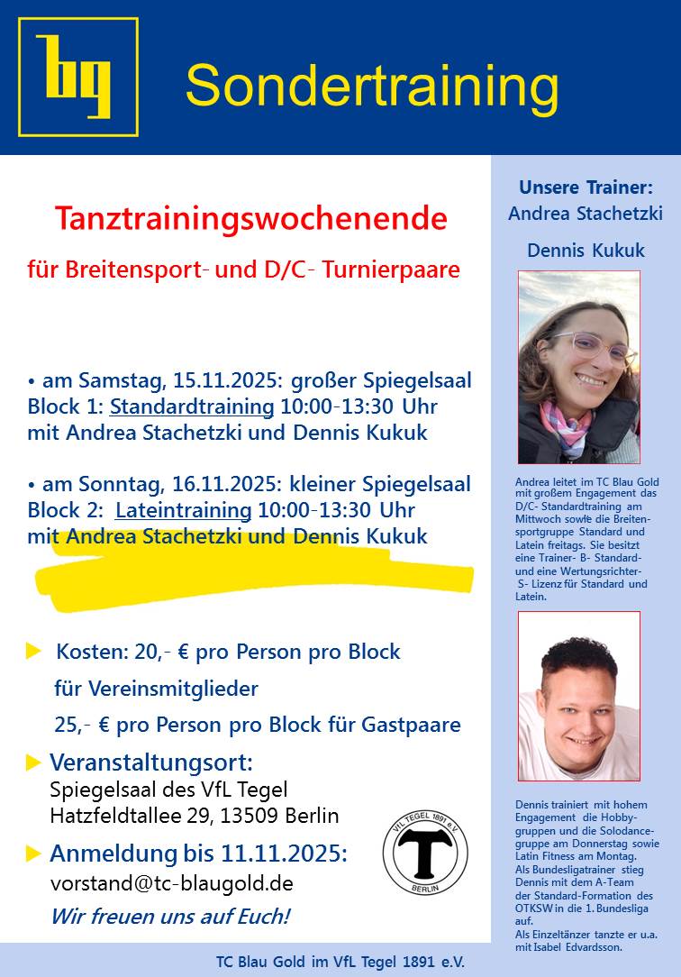 Liebe Regina und lieber Detlev, der Vorstand gratuliert euch sehr herzlich zu eurem Aufstieg und wünscht euch weiterhin jede Menge Spaß und Erfolg beim Langsamen Walzer, Tango, Quickstep sowie beim Slowfox und beim Wiener Walzer.