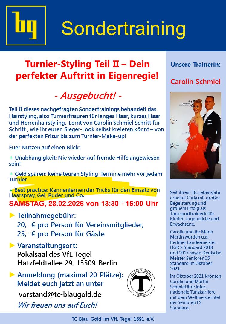 * 10. Januar 2026: Sondertraining Turnier-Styling mit C. Schmiel