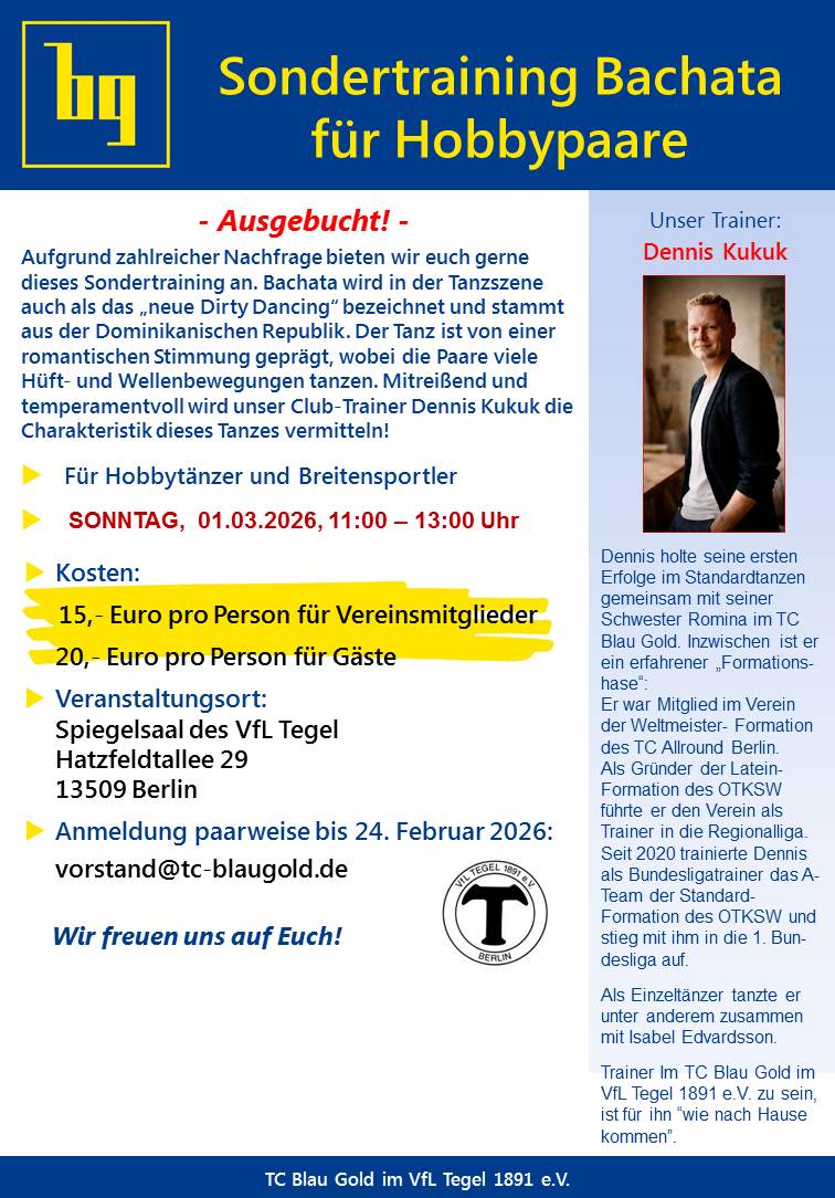 * 2. Januar 2026: Start unseres regulären Tanzsportbetriebs