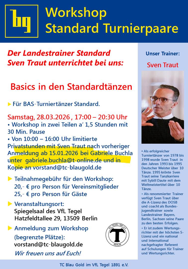 Wir haben es geschafft: Der Vorstand des TC Blau Gold im VfL Tegel 1891 e.V. freut sich sehr, dass der Landessportbund Berlin e.V. dem VfL Tegel 1891 e.V. und damit auch unserer Tanzsportabteilung für die nächsten 5 Jahre das Kinderschutzsiegel verliehen hat, weil wir alle sechs Kriterien erfüllen. Ein herzliches Dankeschön geht an unser engagiertes Präsidium.