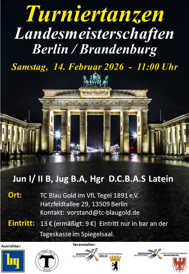 traditionell entfaltet der von uns allen gelebte und geliebte Tanzsport über die Osterfeiertage erneut seine besondere Anziehungskraft, und viele unserer Turnierpaare werden an Deutschlands größtem Master Tanzfestival „Die Ostsee tanzt“ vom 29. März bis 1. April 2024 in Schönberg-Holm oder an Deutschlands ältester Tanzsport-Großveranstaltung „50.Tanzkarussell um das Blaue Band der Spree Berlin“ teilnehmen. Deswegen wünsche ich allen Turnierpaaren super viel Spaß auf dem Tanzparkett und die besten tänzerischen Erfolge! An den Osterfeiertagen finden in unserem TC Blau Gold im VfL Tegel keine Tanzkurse statt. Stattdessen kann am Ostersamstag, 30. März 2024 sowie am Ostermontag, 1. April 2024 jeweils von 10:00 - 21:00 Uhr frei trainiert werden. Auch im Namen unserer 2. Vorsitzenden Claudia Will, unseres Sportwarts Stephan Kambach, unseres Sportwarts Sven-Olaf Stalinski und unseres Kassenwarts Marco Schmidtchen wünsche ich euch allen und euren lieben Familien fröhliche, gesunde und glückliche Osterfeiertage!