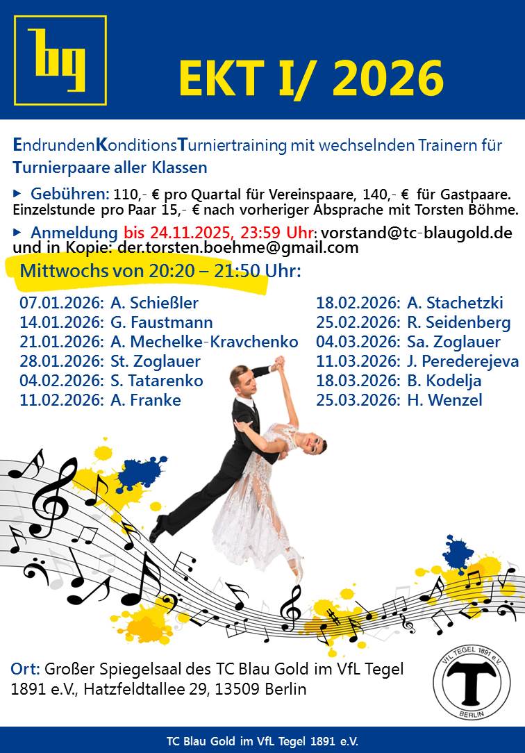 - Vollumfängliche Betreuung unserer Turnierpaare (Startmeldungen, Startbuch, Startkarte, Startmarke, …)